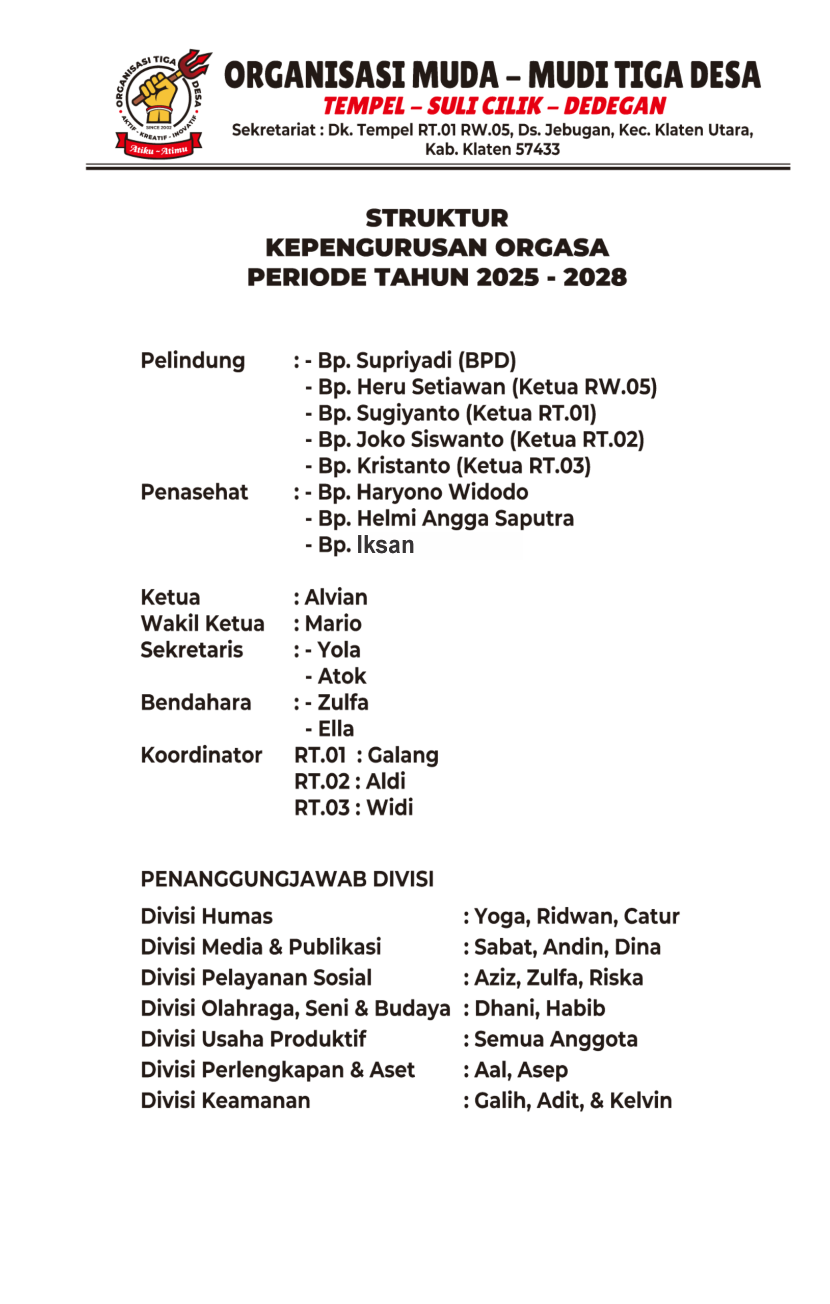 STRUKTUR KEPENGURUSAN ORGASA RW 05 TSD